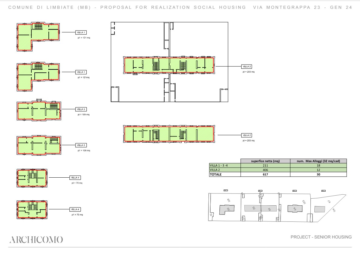 The construction of Student Housing and Senior Housing is expected at the Mombello complex in Limbiate. The sector, as a whole, is spread over an area of 44 hectares and sees the presence of partially abandoned buildings built between the end of the 19th century and the beginning of the 20th century used as a hospital structure as well as the ancient Villa Crivelli dating back to the 14th century. The redevelopment of a pavilion is planned for the creation of a student residence for 108 students as well as service spaces. The residences for the elderly will be built through the restoration of the villas originally intended for doctors, for 60 users.