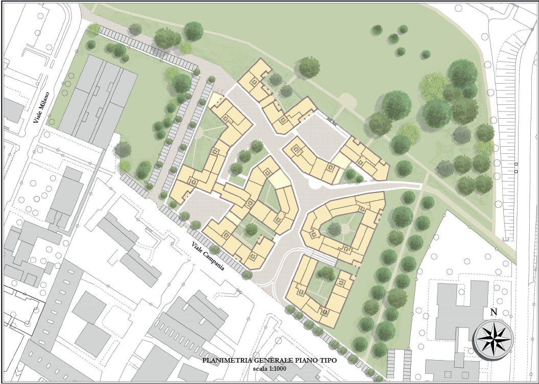 Il Piano Attuativo dovrà richiamare la composizione urbana, architettonica e relazionale riscontrabile all’interno dei borghi e centri storici, come definito nello STUDIO URBANISTICO E ARCHITETTONICO – Area del Campo Sportivo di Rozzano Vecchio / Area Residenziale di Viale Campania, al quale la proposta progettuale dovrà fare riferimento.
